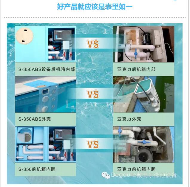 很多人說,戴高樂泳池設備的一體化泳池設備比淘寶貴的,也比其他廠家貴!但是,小編只想說,你們只看到我們的價格,并沒有看到我們的品質(zhì)。細心與戴高樂泳池設備打過交道的人都知道,戴高樂是一家擁有18年生產(chǎn)經(jīng)驗的一體化泳池設備廠家,18年來我們只做精品,不做低價,我們要的就是給客戶提供最優(yōu)質(zhì)的服務和產(chǎn)品,絕不以惡意的低價來騙取一兩個訂單,我們做的都是長久的生意,也希望和客戶成為長久的朋友。