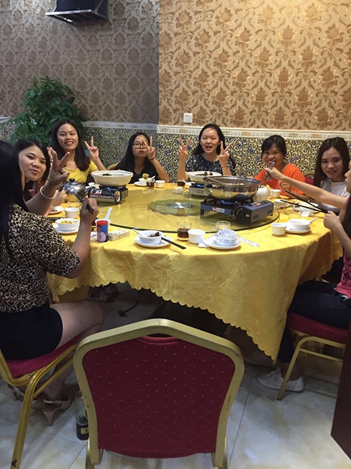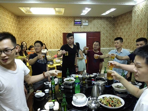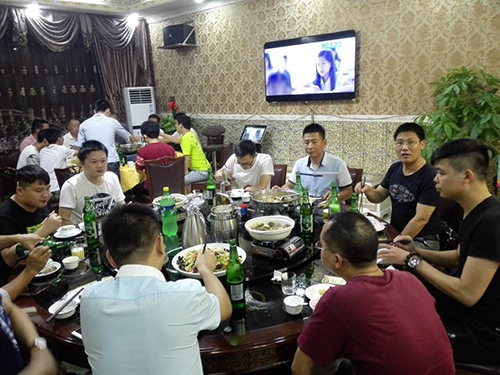 在緊張嚴(yán)肅的會(huì)議之后,全員到齊當(dāng)然得去吃個(gè)團(tuán)圓飯啦?。ㄟ@個(gè)包間是不是很高大上呀,自帶點(diǎn)歌系統(tǒng)哦?。?/p>