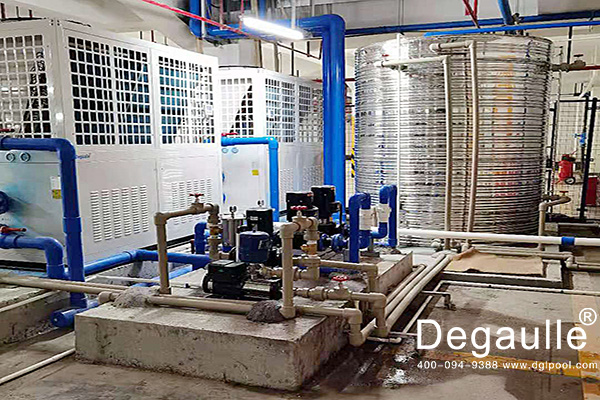 除了保證游泳池水質(zhì),游泳池的水溫也非常重要,在過低的水溫玩水、游泳,兒童容易患感冒、身體不適等問題。因此游泳池恒溫系統(tǒng)是非常有必要的,這個項目2臺25匹的空氣源熱泵用于維持游泳池的水處于恒溫中。另外1臺10匹的空氣源熱泵用于淋浴房。
