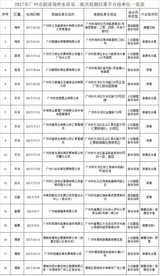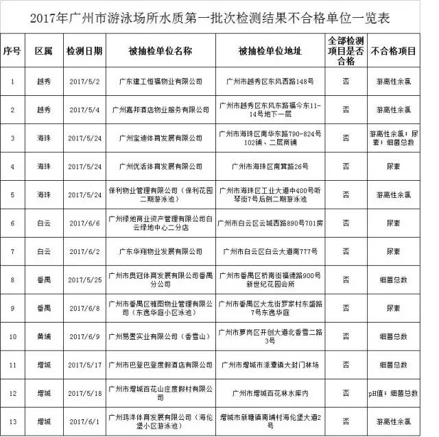 廣州市衛(wèi)計(jì)委最近抽檢了599家泳池,公布了這些泳池的水質(zhì)抽檢結(jié)果,其中有31家泳池不合格,其中不乏星級(jí)酒店泳池,很多小區(qū)里面的泳池也不合格。