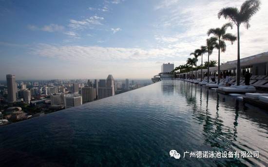 新加坡著名的金沙酒店上的無邊游泳池,高度為650英尺(198米),是這一高度下世界上最大的室外泳池。 泳池猶如懸崖邊上一汪清泉,“泉水”逐漸向地平線蔓延。“水天相接”處,仿佛有一道瀑布飛流直下。不過,事實(shí)上,水漫過泳池邊界后,并非直接砸向地面,而是流入下面不遠(yuǎn)的集水池,經(jīng)過濾后重新輸入泳池。